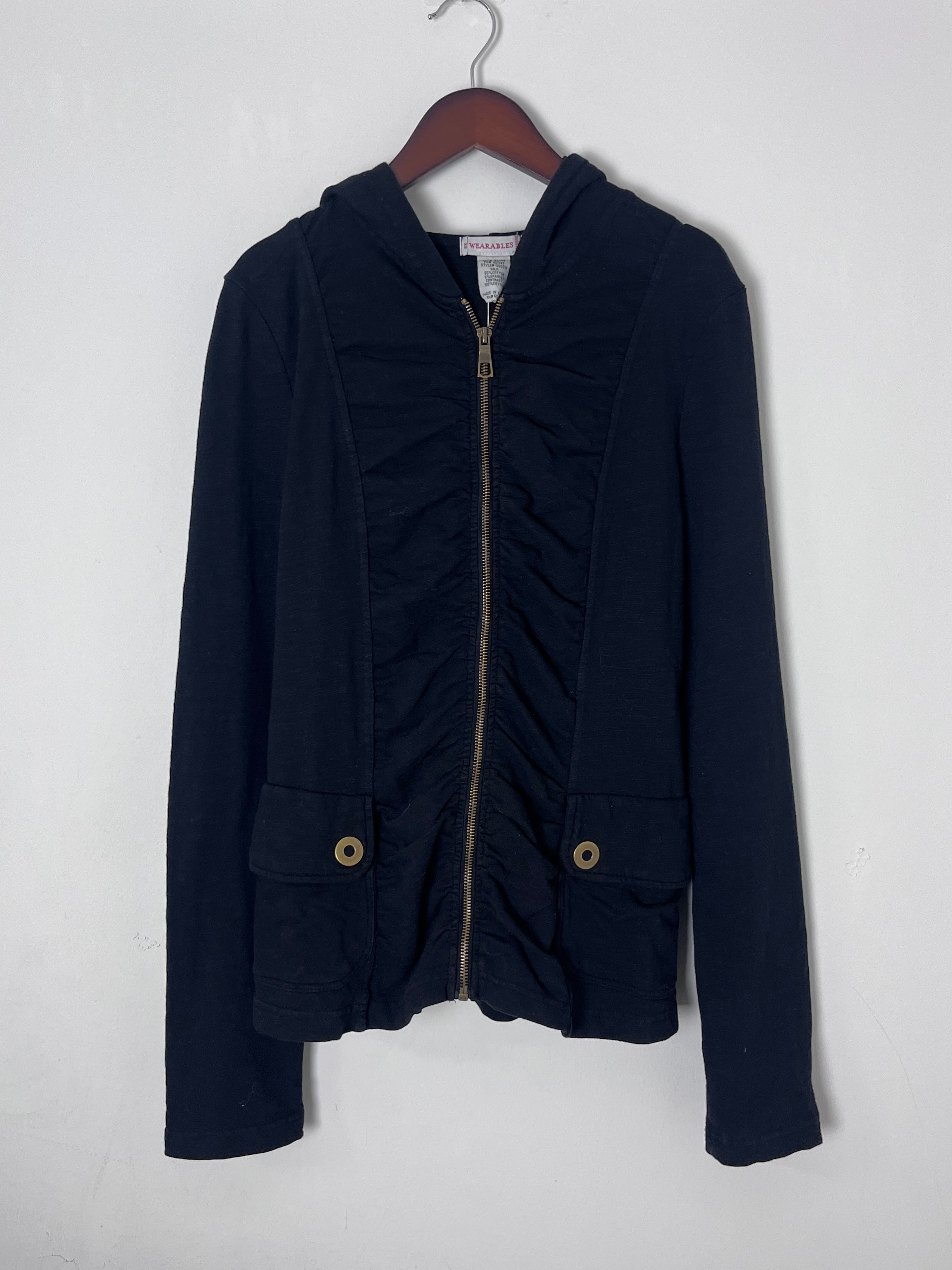 shirred zip hoodie