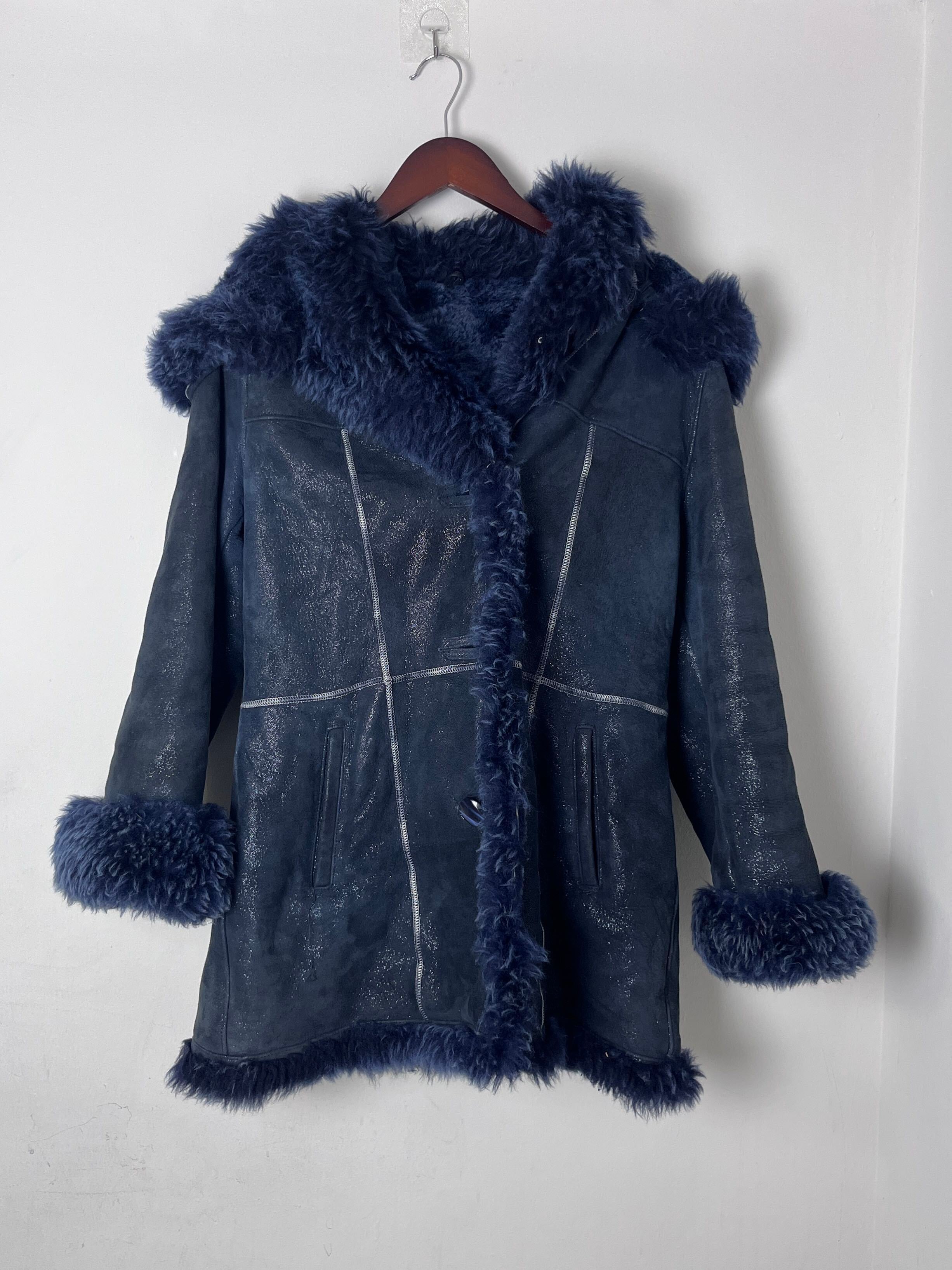 blue mouton hoodie coat