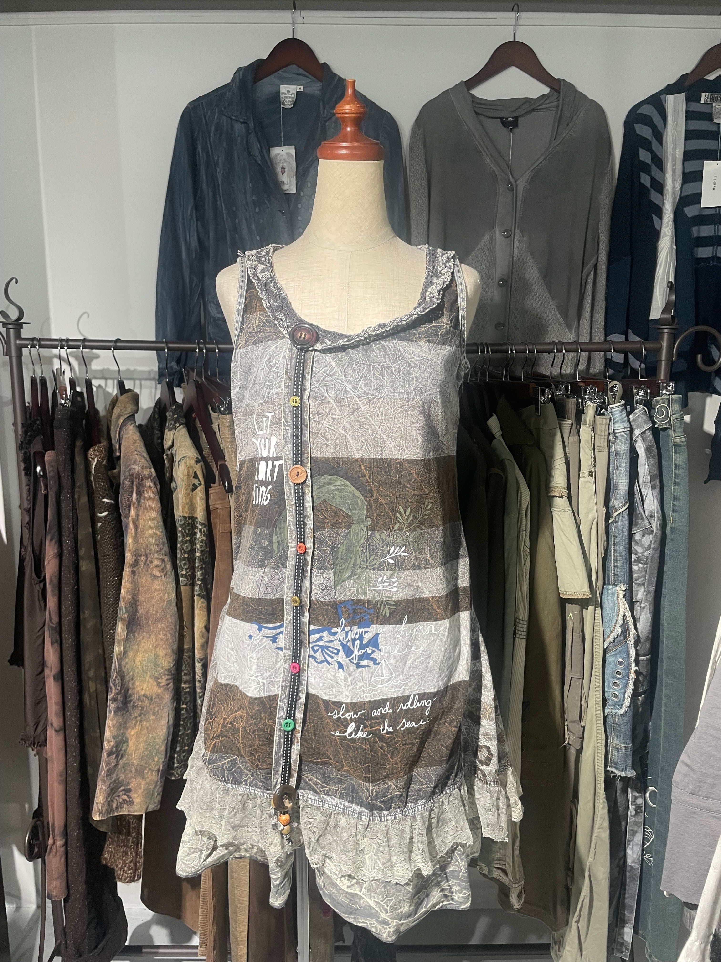 Patchwork button-front sleeveless dress
